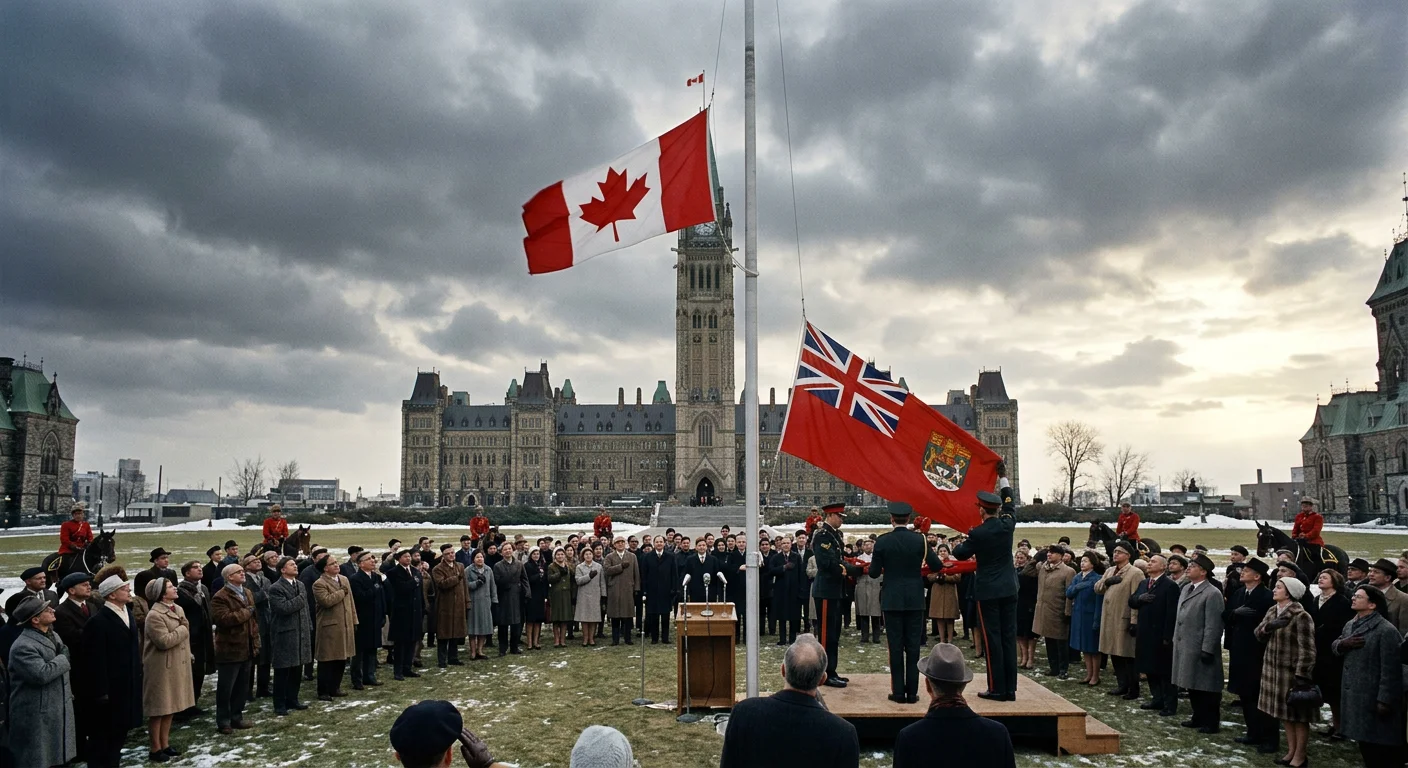 On February 15, 1965, a new flag rose over Parliament Hill — and a country let out a long breath. This wasn't a simple administrative decision. It was one of the most charged political battles in Canadian history. For years, Canadians argued about who they were, where they came from, and what they wanted the world to see when they looked up.