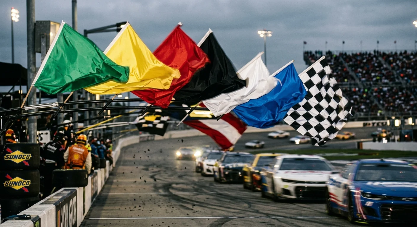 NASCAR flag meanings run far deeper than the iconic checkered flag at the finish line. There's a full visual communication system built into every race. It covers caution periods, penalties, final-lap drama — all of it.