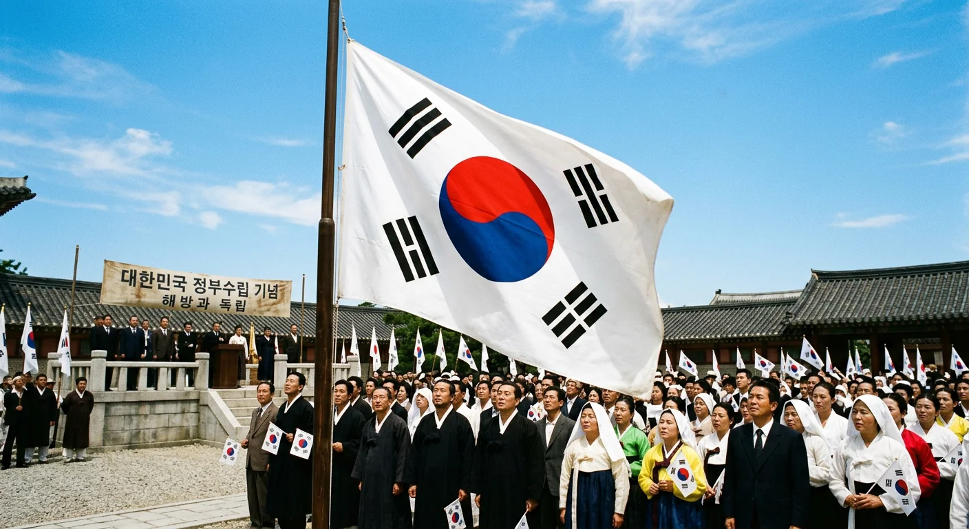 Liberation came in 1945. North and South Korea both used the Taegukgi at first, but that shared identity didn't last. On August 15, 1948 , the Republic of Korea took shape, and the Taegukgi became its national flag. North Korea chose a Soviet-style design instead. A 42-member standardization committee met in January 1949 to lock down the design for good — ending 67 years of beautiful, stubborn inconsistency.