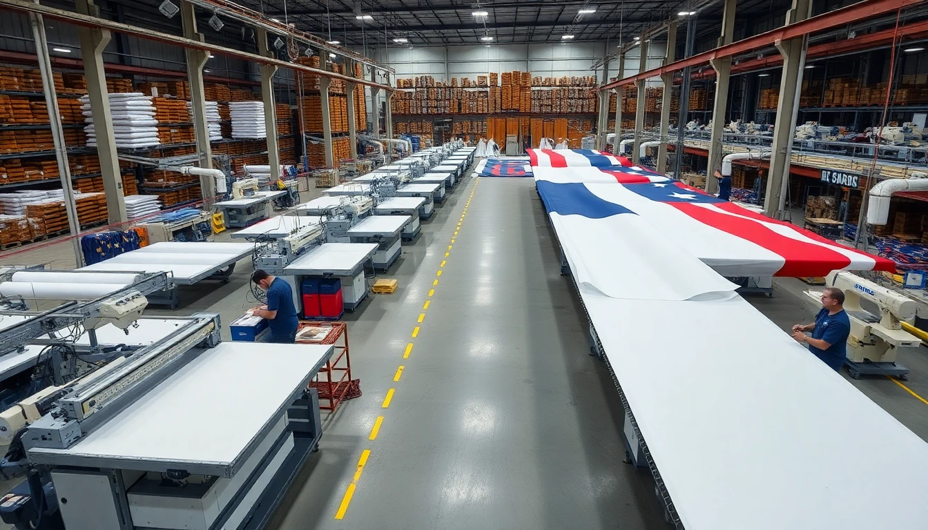 The physical scale shows everything. Industrial flag makers don't buy desktop printers or small dye-sublimation units. They install production lines with special sewing equipment. They use industrial cutting tables that handle 100-layer fabric stacks. They run climate-controlled warehouses storing millions of yards of nylon and polyester material. Sunward Flag's facility produces up to 5,000 flags each month with material inventory that's 90% nylon and polyester blends chosen for their strength properties.